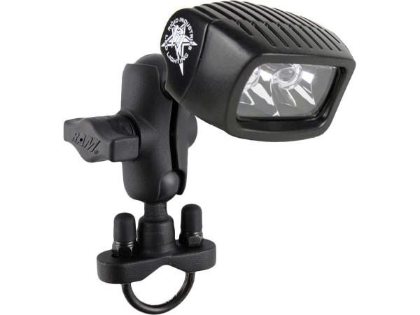 Mount only. Lights NOT INCLUDED and are sold separately. This mount features .5-1.25" diameter U-bolt base. The base holds a 1" diameter ball which connects to a 2.38" long arm. At the end of the arm is another 1" diameter ball which connects to a small light mounting tab. Great for mounting a SRM, SRQ or D-Series light to a 1" diameter pole.