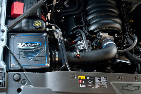 Cold air intake systems aren't created equal and savvy customers know it. This is why Volant Intakes are so popular with customers who know their air intakes. What makes Volant Cold Air Intakes different? First, Volant eliminates your restrictive factory airbox, filter, and intake tube. In its place goes the Volant Power Box. This box houses a high flow Volant Air Filter. The superior design of the Volant Intake Box protects the filter and ensures that colder air is pulled in from the fender instead of the engine bay, resulting in more horsepower and torque. Being an enclosed system, it keeps your engine quiet at cruising speeds, but allows it to still roar to life when you stomp the gas. This, coupled with the fact that Volant Cold Air Intakes incorporate your existing sensors, mean you won't have any check engine lights and they are safe for use on your vehicle. This "Factory Tuned" design means you won't need any tuning and makes this truly a bolt on system. Everything you need to install the unit comes with your Volant Cold Air Intake and you'll be able to install it with basic hand tools in an hour or less. Volant Intakes all are backed by a lifetime warranty. Volant Cold Air Intake Systems exceed OE standards and as a result will not void any existing factory warranties that you may have. Additionally, you'll enjoy increased horsepower and torque, as well as improved throttle response. Fuel economy gains, especially during freeway conditions, are commonly achieved helping the unit to pay for itself over time. The part number for this item is 15553 and it fits 2014-2018 Chevy Silverado GMC Sierra (1500 Only 5.3 V8) models.